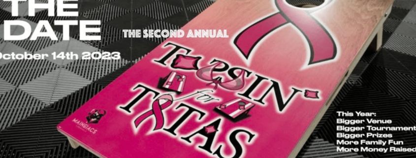 Join us for the second annual Tossin’ for Tatas Charity Cornhole Tournament! This year will be even bigger and better with 4 separate tournaments, including the return of the Queen of the Court women’s singles battle feature for the coveted T4T 2023 custom crown and the exciting addition of the Juniors Switcholio Mixer, all taking place under the dome at the newly renovated Turf’s Sports Grill in Portland, ME. And this year we will have fun for the whole family and the non-cornholers with the addition of our Family Carnival Corner and our Community Education Alley with food trucks, full bar and amazing raffle items… OH MY!!
